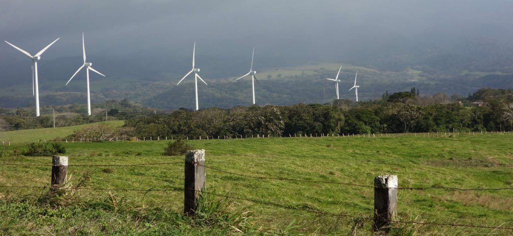 Parque eólico en Alajuela, Costa Rica. Crédito: Wikimedia Commons